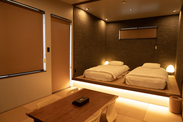 予算の中で雰囲気を最大限に引き出すために左官/配色に気を遣いデザイン。NEO-和風な雰囲気をイメージ。